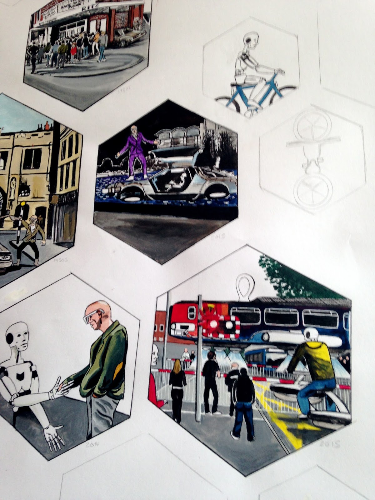 A weekend away in Wales, now it's back in the studio for work on the Jason Bradbury time travel illustration.